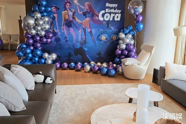 从郭爸晒出的生日现场视频来看,郭碧婷有很用心的为女儿营造过生日的仪式感,生日宴以cora最爱的动画为主题,从背景板来看是几个又酷又飒的动漫girl,周围环绕蓝紫色气球,由此可以看出,cora这性格并不是妈妈郭碧婷那种甜美性格,更像奶奶向太。